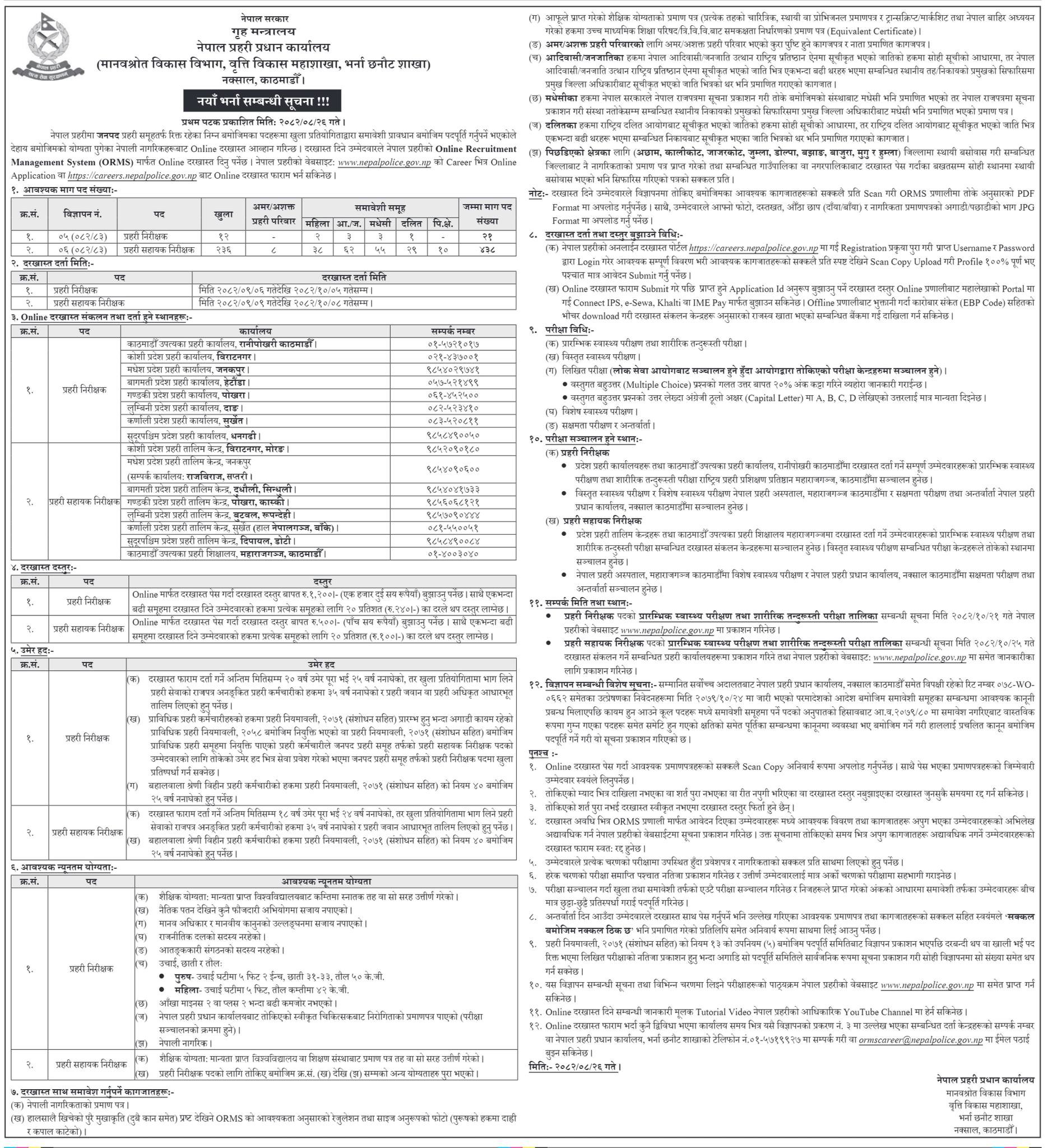 नेपाल प्रहरीको इन्स्पेक्टर र असई पदमा नयाँ भर्ना खुल्यो