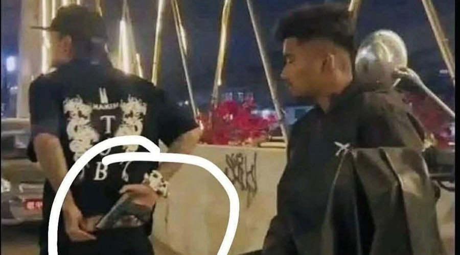 सामाजिक सञ्जालमा भाइरल बनेका तस्वीरहरूमा ‘टीओबी’ लेखिएको ज्याकेट लगाएका व्यक्तिले कम्मरको पछाडि भागमा पेस्तोल जस्तो वस्तु घुसार्दै गरेको देखिन्छ।