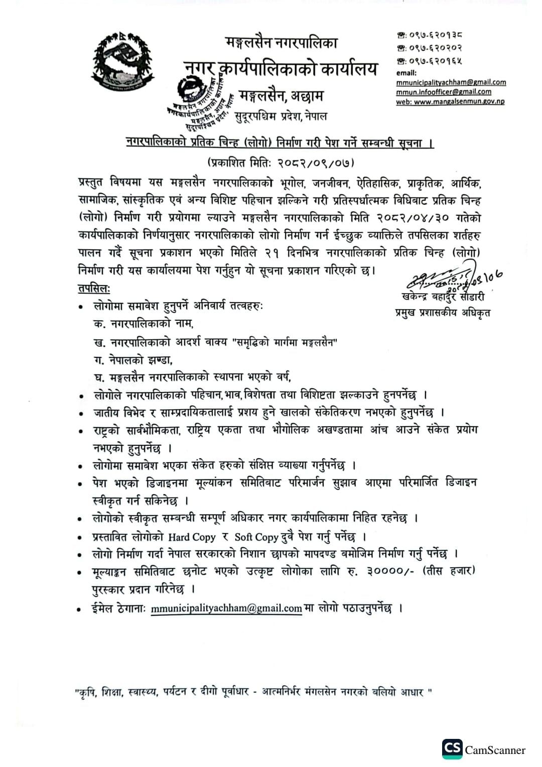 मंगलसेन नगरपालिकाद्वारा लोगो डिजाइनका लागि प्रस्ताव आह्वान