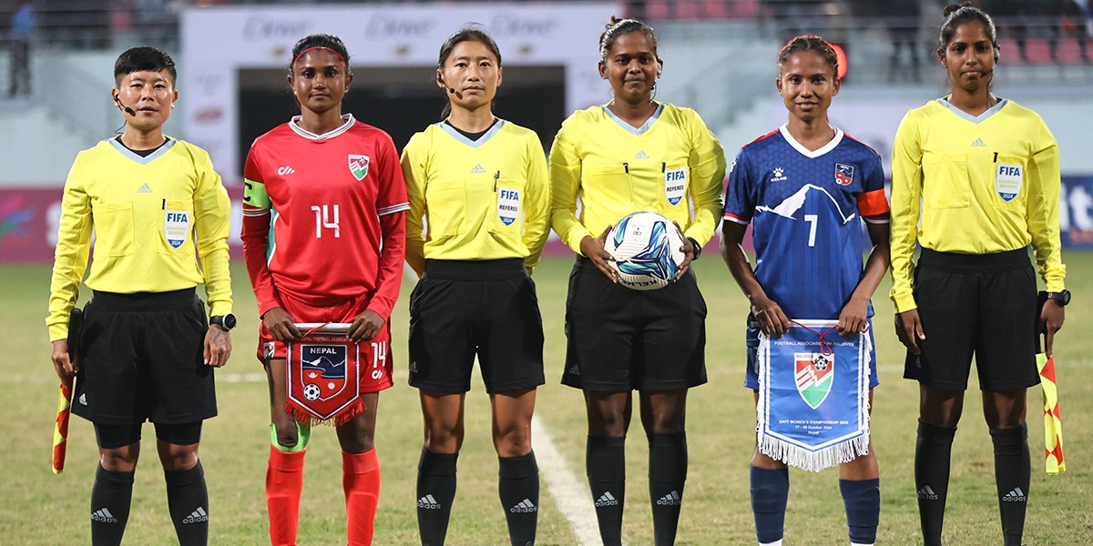 नेपालले साफ माहिला च्याम्पियनसिप–२०२४ मा माल्दिभ्सलाई पराजित गर्दै प्रतियोगितामा उत्कृष्ट जित हासिल गरेको छ । साफ च्यापियनसिपमा नेपालको यो पहिलो जित हो । त्रिपुरेश्वरस्थित दशरथ रङ्गशाला आज भएको खेलमा नेपालले माल्दिभ्सलाई ११–० गोलअन्तरले पराजित गर्दै विजयी भएको हो । नेपालका लागि रेखा पौडेलले पाँच गोल गरिन् भने प्रीति राईले ह्याट्रिक पूरा गरिन् । यसैगरी सविता राना मगर, अनिता केसी र अमिसा कार्कीले समान एक–एक गोल गरे । जितसँगै चार अङ्क बटुलेको नेपाल समूह बीको शीर्ष स्थानमा उक्लिएको छ । नेपालले आफ्नो पहिलो पहिलो खेलमा भुटानसँग गोलरहित बराबरी खेलेको थियो ।