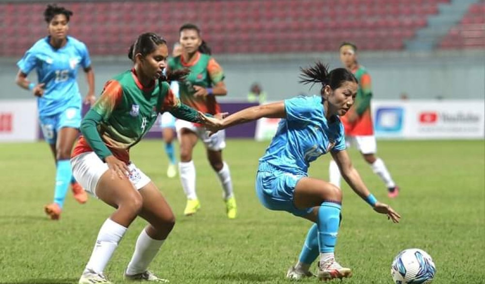 राजधानीमा जारी साफ महिला च्याम्पियनसिप फुटबलमा भारतलाई पराजित गर्दै बङ्गलादेश प्रतियोगिताको सेमिफाइनलमा प्रवेश गरेको छ ।