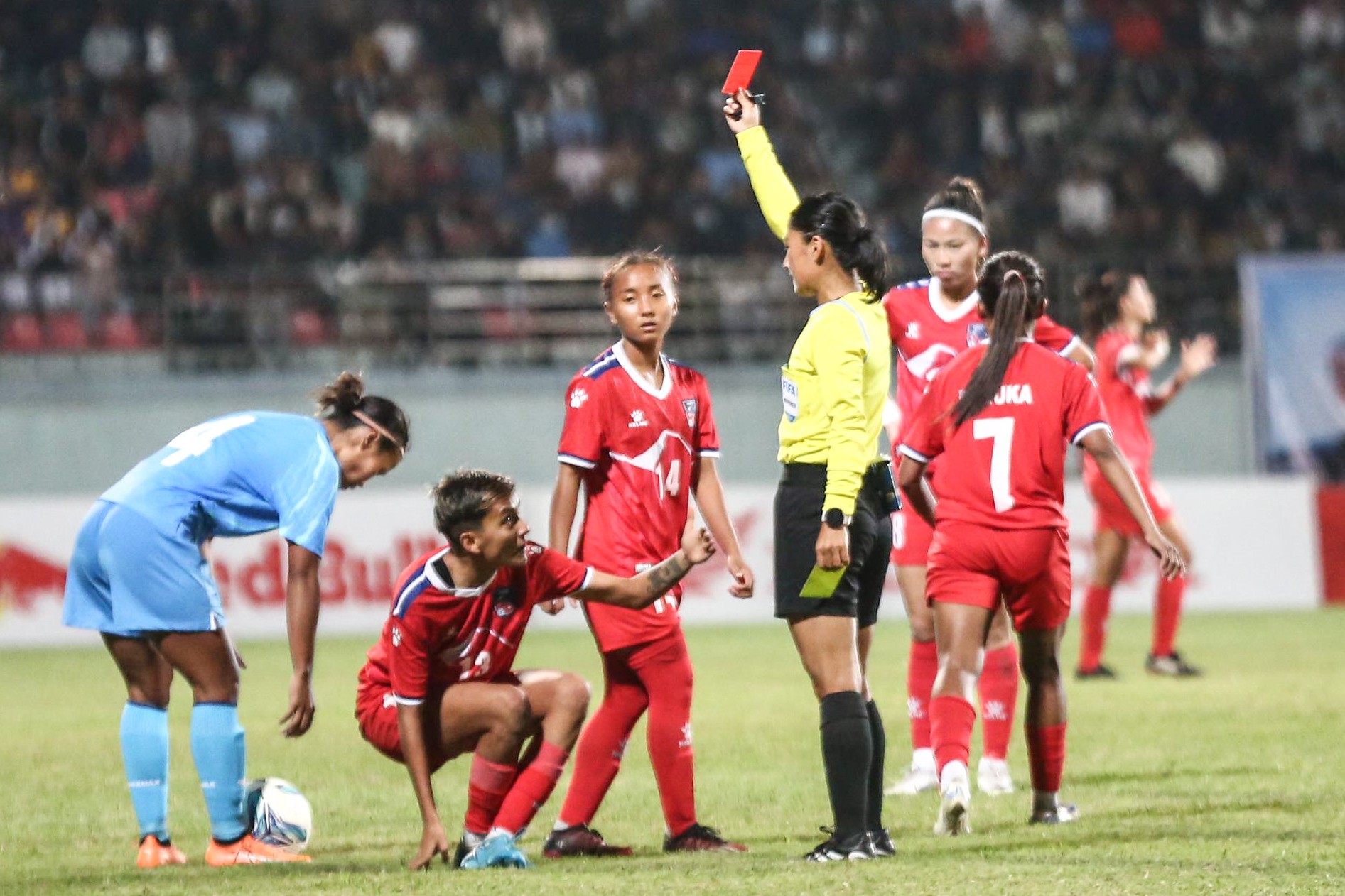 २३वर्ष अघि भारतको मणिपुरकोप्रान्तीय टोली नेपाल भ्रमणमाआएको थियो। उसले नेपाल (रातो) र अन्य दुई टोलीनेपाल (निलो) र नेपाल (पहिलो)लाई फराकिलो अन्तरलेहरायो। यो घटनाले दक्षिणएसियाली महिला फुटबलमा भारतको दबदबा स्पष्ट पार्यो।