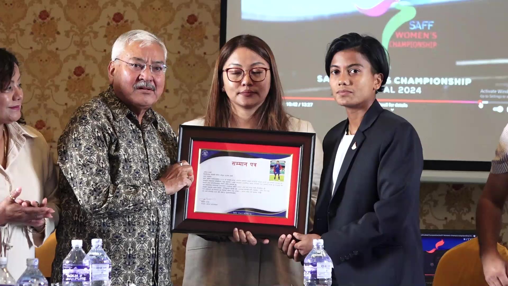 नेपाली राष्ट्रिय महिला फुटबल टोलीकी मिडफिल्डर अमिषा कार्कीलाई एसएस फाउन्डेसनले नगदसहित सम्मानित गरेको छ।