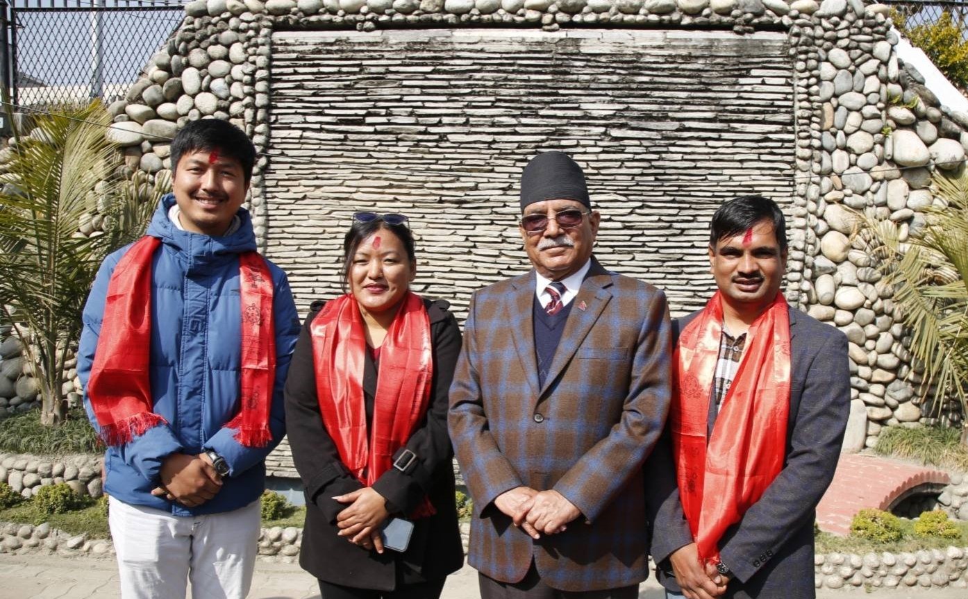 भेटका क्रममा अध्यक्ष प्रचण्डले भने, “आन्तरिक लोकतन्त्रको अभ्यासमार्फत निर्वाचित युवाको ऊर्जा नेपाली समाजको अग्रगामी रुपान्तरणका लागि शैक्षिक आन्दोलनको अगुवाई र राजनीतिक आन्दोलनको सेवा गर्न सही ढङ्गले प्रयोग हुने विश्वास लिएको छु ।”