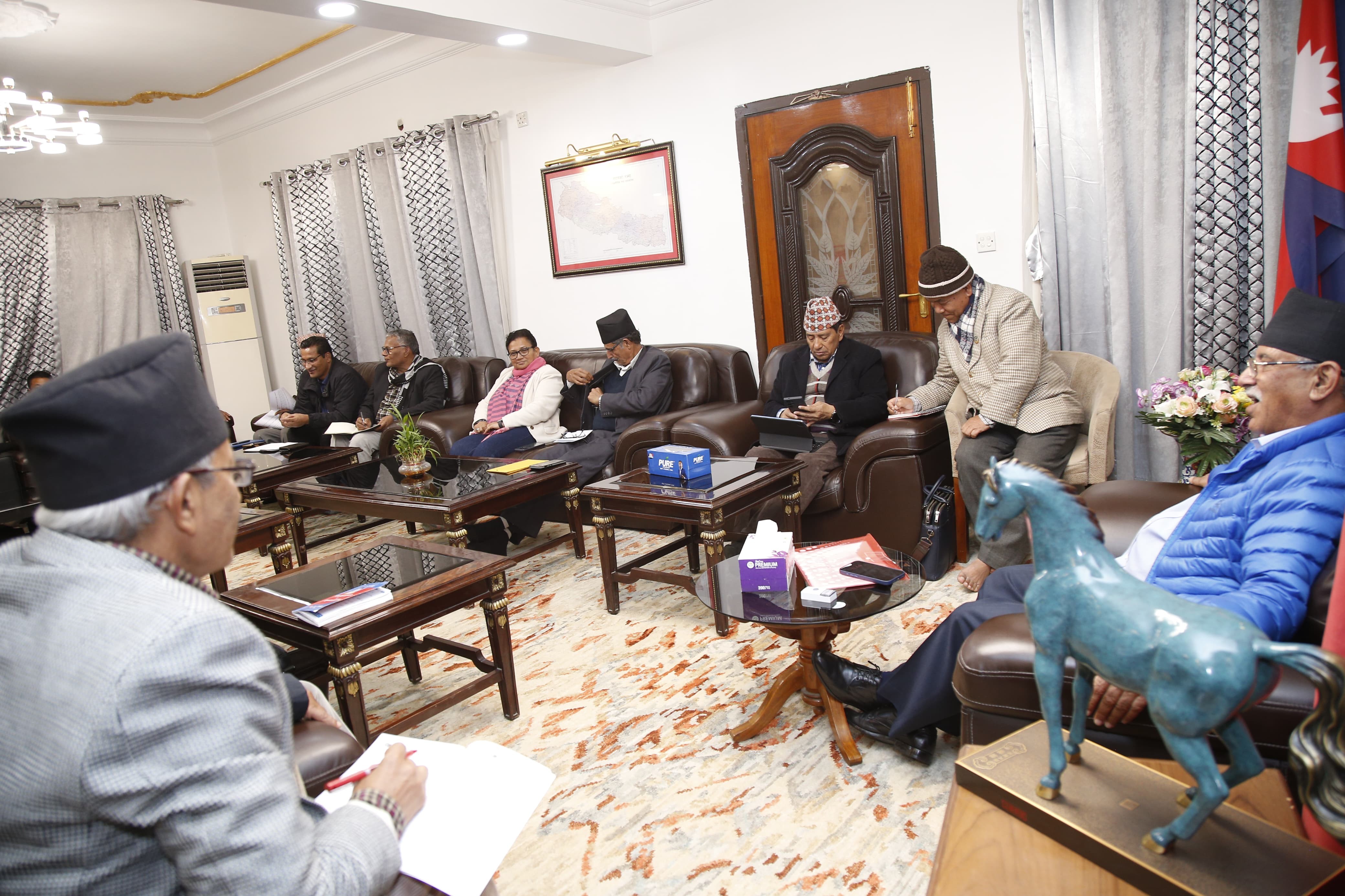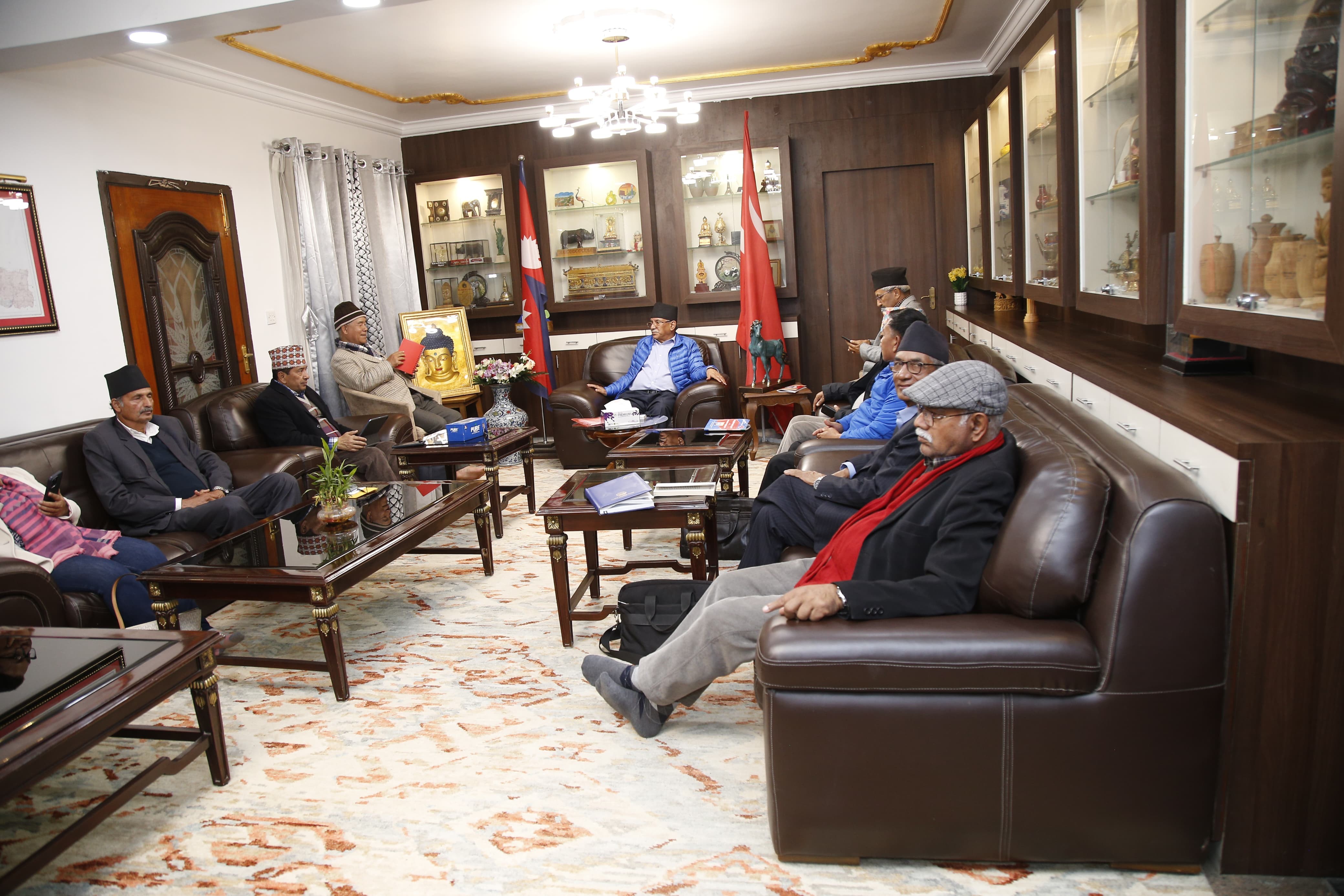 माओवादी केन्द्रका अध्यक्ष पुष्पकमल दाहाल ‘प्रचण्ड’ निवास खुमलटारमा बैठक जारी छ ।