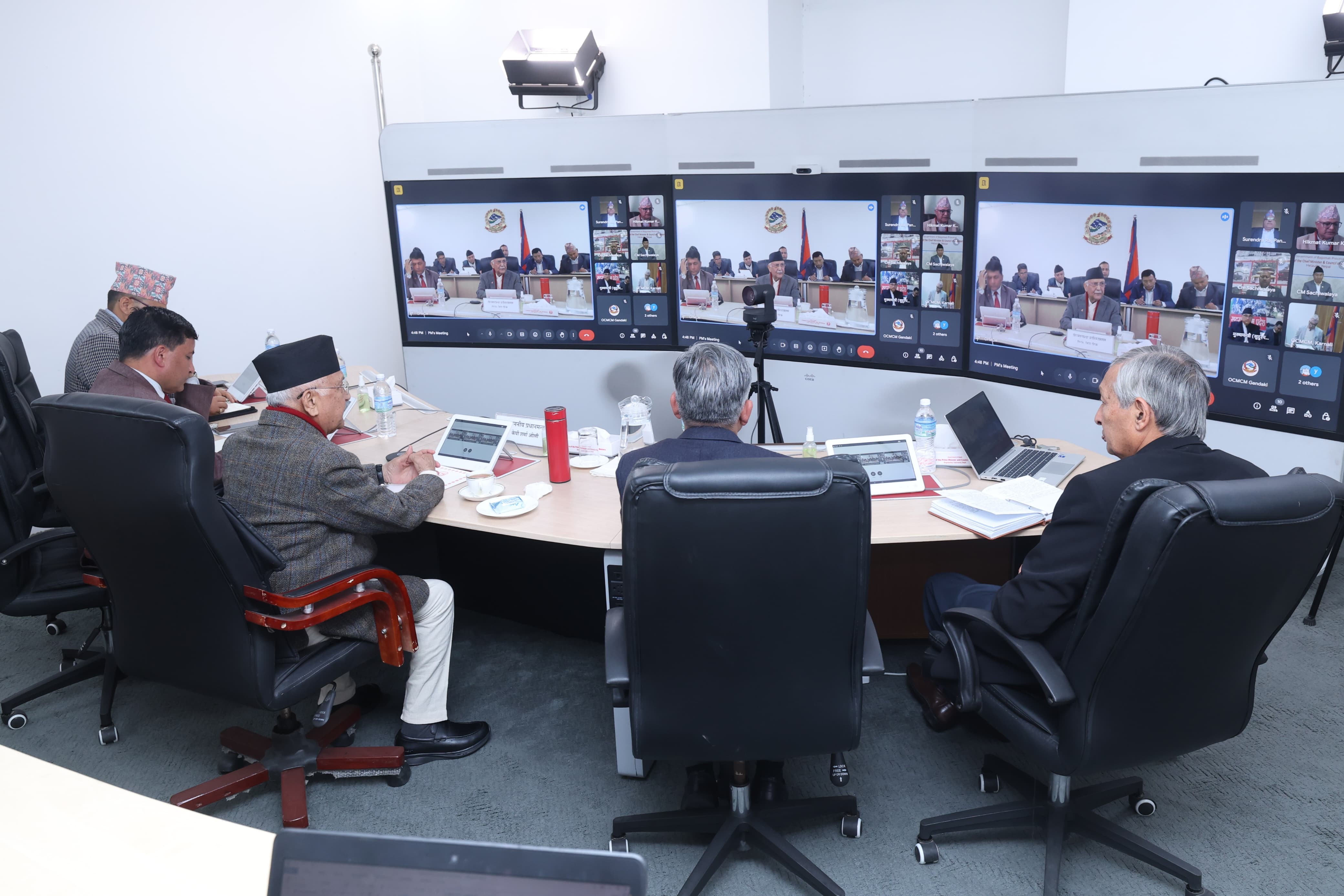 सिंहदरबारस्थित प्रधानमन्त्री तथा मन्त्रिपरिषद्को कार्यालयको ‘एक्सन रूम’ बाट प्रधानमन्त्री ओलीले मुख्यमन्त्रीहरूसँग पहिलो पटक यसप्रकारको संवाद गरेका हुन् । करिब साढे दुई घण्टा भएको छलफलमा उनले प्रदेशका मुख्यमन्त्रीहरूसँग एक्लाएक्लै छलफल गर्नुपर्ने आवश्यकता देखिएको बताउँदै आगामी आर्थिक वर्षको बजेट निर्माणको तयारी जुट्दा थप छलफल गर्दै जाने विश्वास दिलाए ।