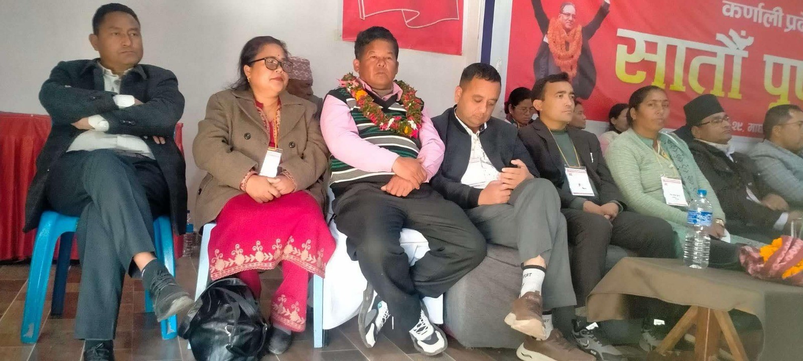 मल्ललाई पार्टीको कर्णाली प्रदेश समितिको सातौं बैठकमा सहभागी हुन सुर्खेत आएका अध्यक्ष पुष्पकमल दाहाल ‘प्रचण्ड’ले खादा र माला लगाई पार्टीमा स्वागत गरेका हुन् ।