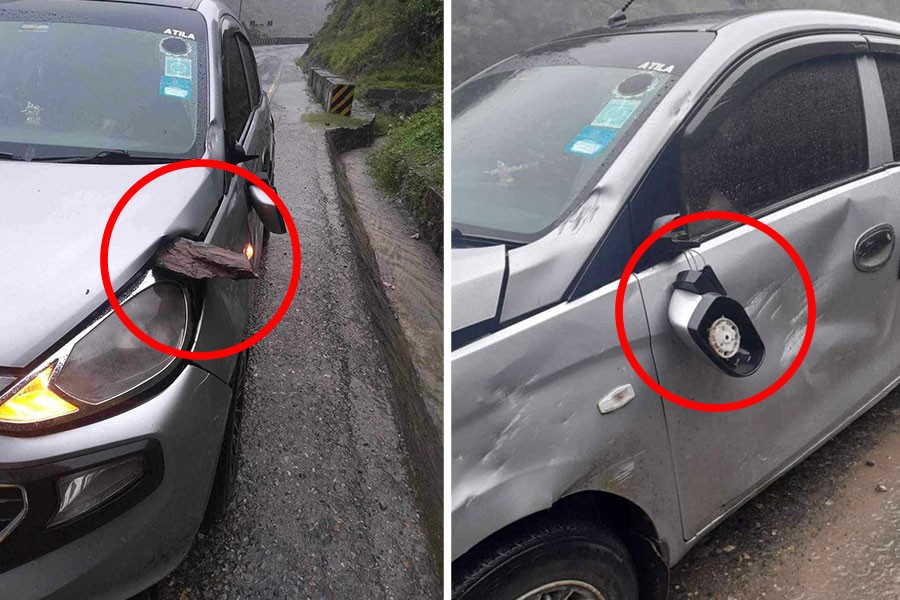 गुडिरहेको कारमाथि ढुंगा खस्दा कारमा सामान्य क्षति
