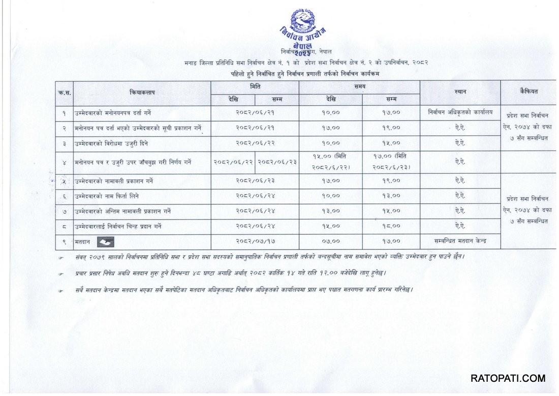 मनाङ प्रदेशसभा–२ उपनिर्वाचन: यस्तो छ कार्यतालिका