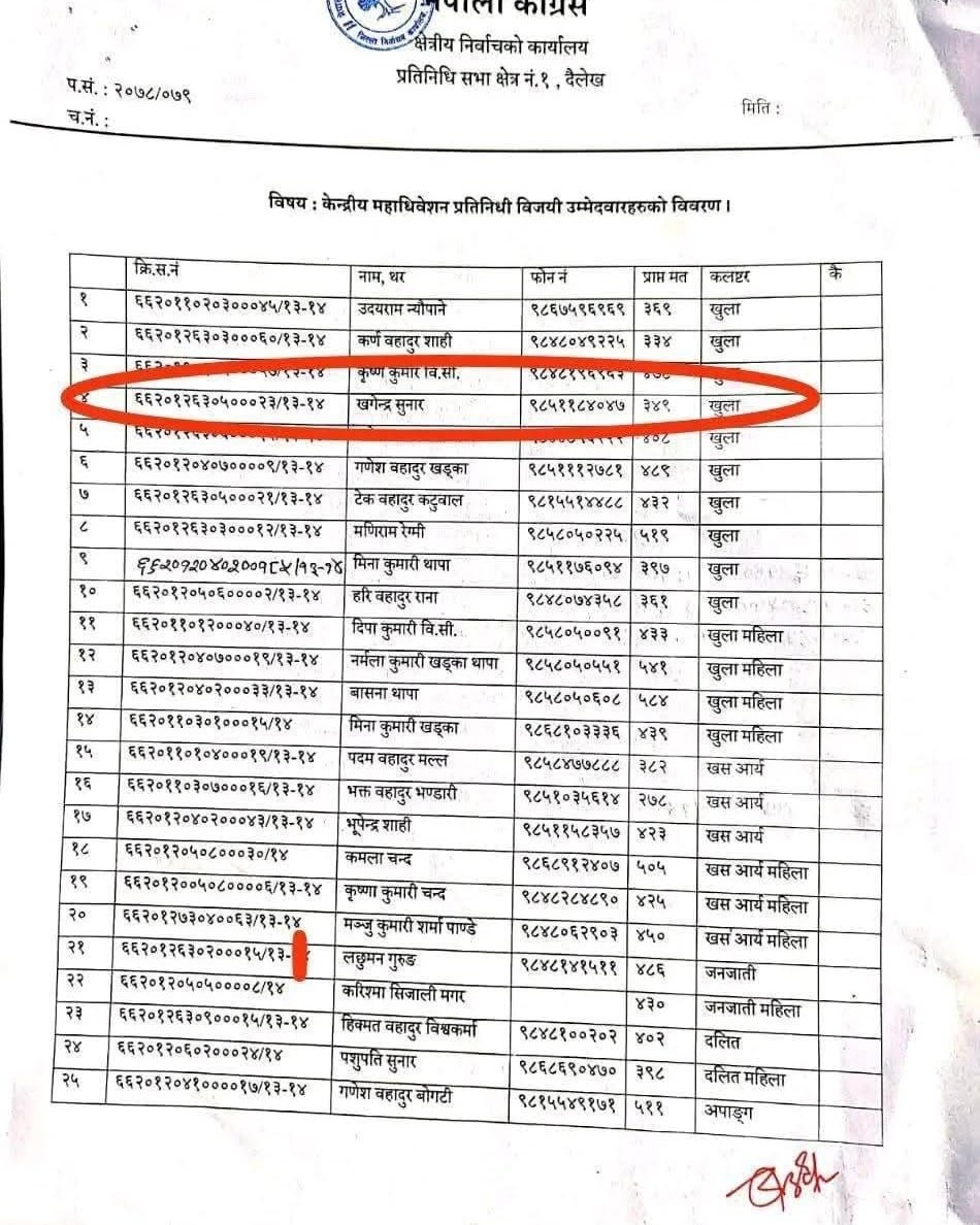 तर, कल्याण श्रेष्ठले आफू मन्त्री सिफारिस गर्ने हैसियतमा नरहेको बताएका छन्। खगेन्द्र सुनार हाल नेपाली कांग्रेसका केन्द्रीय महाधिवेशन प्रतिनिधि समेत हुन्। उनी दैलेख जिल्लाबाट खुला क्लस्टरमा उम्मेदवार बनेका थिए र ३ सय ४९ मत प्राप्त गरी विजयी भएका थिए।