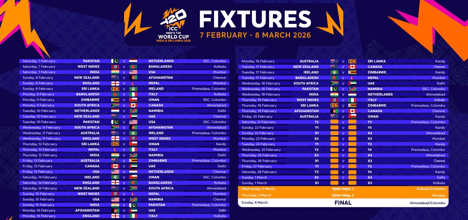 आगामी फेब्रुअरी–मार्चमा भारत र श्रीलंकामा संयुक्त रूपमा आयोजना हुने आईसीसी टी-२० विश्वकप क्रिकेटको खेलतालिका सार्वजनिक भएको छ। मंगलबार भारतको मुम्बईमा आयोजित एक समारोहका बीच सार्वजनिक गरिएको समूह विभाजन अनुसार नेपाल कठिन मानिएको समूह ‘सी’ मा परेको छ।