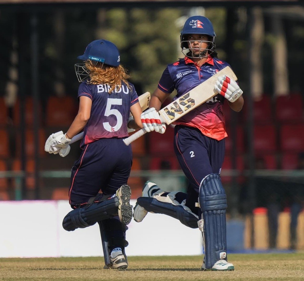 ओपनर सम्झना खड्काले ११ बलमा ६ चौकासहित २६ रन बनाउँदै क्याच आउट भइन्। अर्की ओपनर विन्दु रावलले ५६ बलमा ४४ रन बनाइन्, जसमा ६ चौका समावेश छन्। यो विन्दुको अन्तर्राष्ट्रिय क्रिकेटमा सर्वाधिक रन हो; यसअघि उनको सर्वाधिक स्कोर २८ रन थियो।