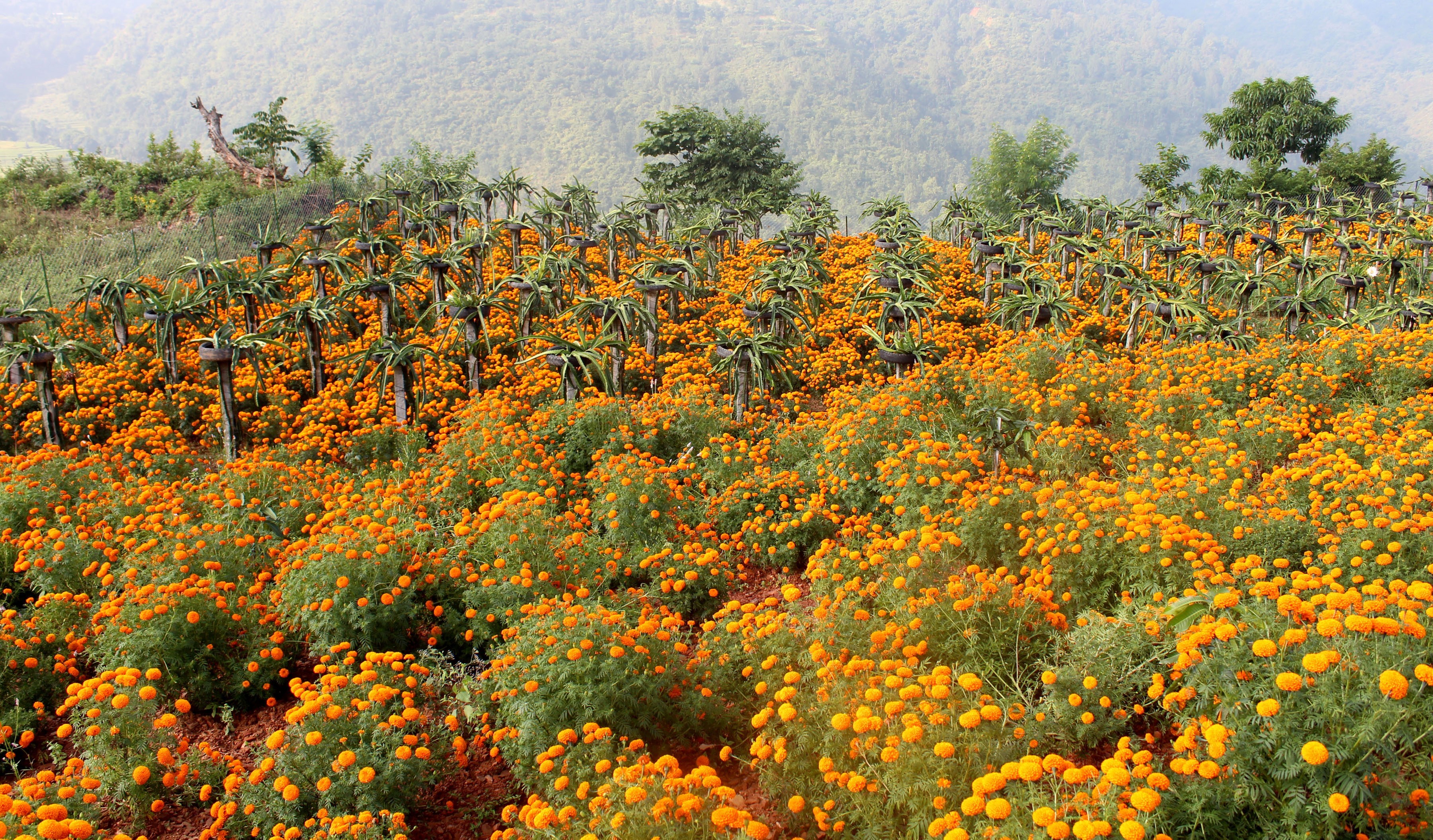 तिहार पर्व नजिकिएसँगै उनको बगैँचाबाट प्रतिकिलो रु २५० मा सयपत्री फूल बिक्री हुँदै आएको छ । तस्बिरः रमेश ढुङ्गेल /रासस