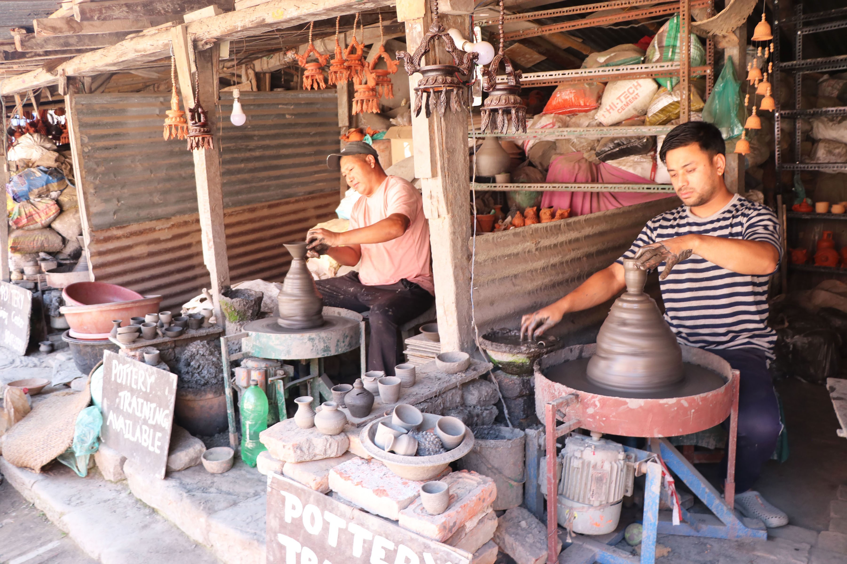 भक्तपुर नगरपालिका–४ बोलाछें तालाक्वोका प्रजापति समुदायका वासिन्दाले माटोको भाँडा बनाउँदै । उनीहरुले तिहार लक्षित पाला, धुपौरो, घैटोलगायतका सामाग्री बनाएका हुन् । तस्बिरः रमेश गिरी/रासस