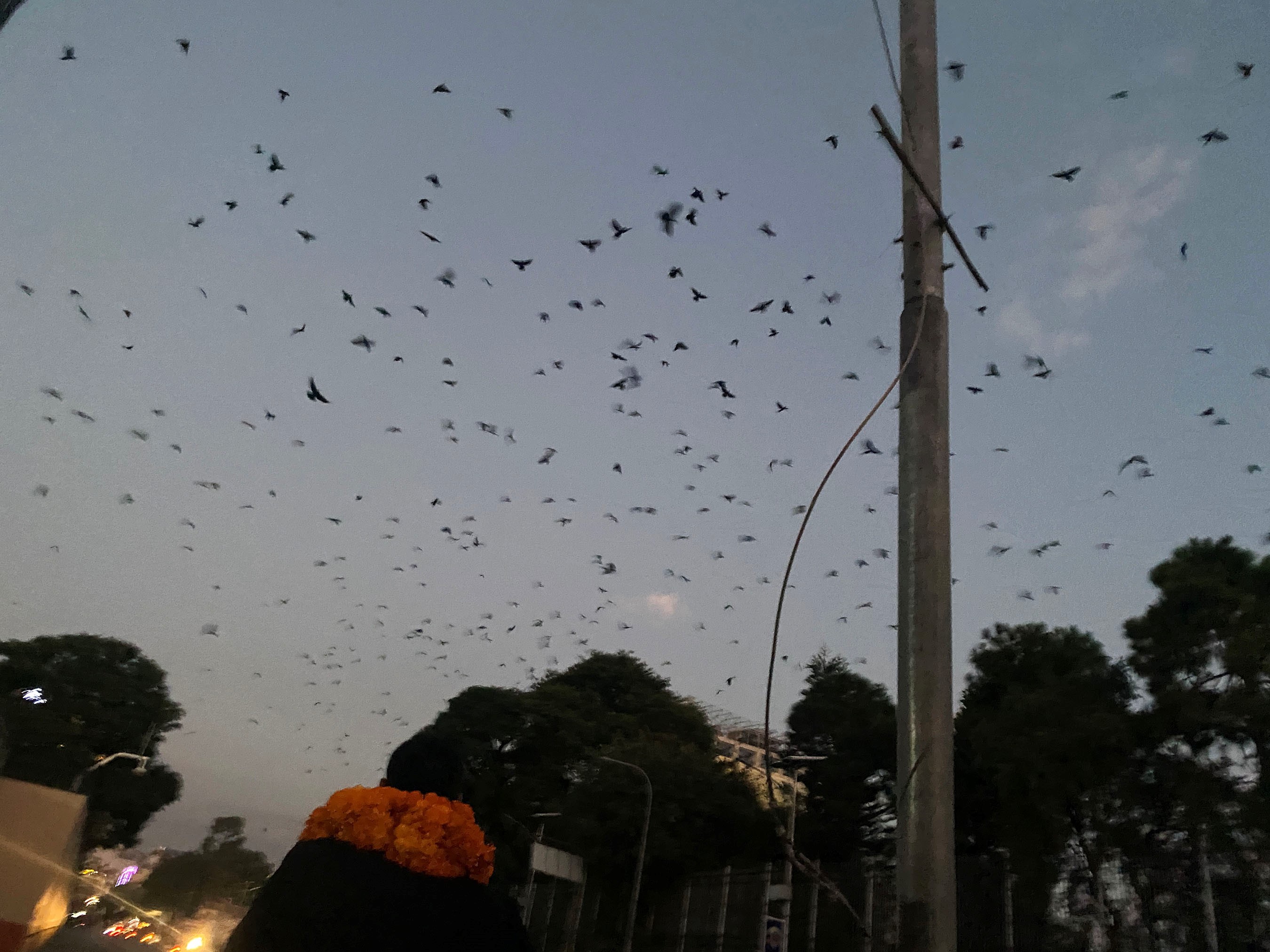 नारायणहिटी सङ्गग्रहालय अगाडी बुधबार बिहान कलाकार रमेश दुलालले काग सम्मेलनका क्रममा कागको समूहलाई जम्मा गर्दै हुँदै ।