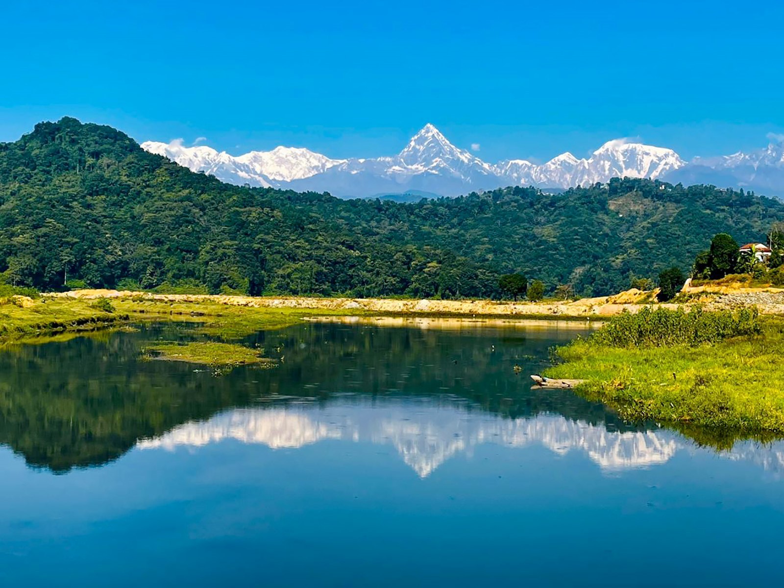The reflection of Machhapuchhre Mountain on Rupa Lake as seen from Sisteni Phant, Pokhara Metropolitan-32.
